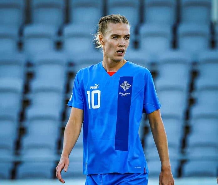 Þar með hefur Dagný skorað 38 mörk í 112 landsleikjum fyrir Íslands hönd. Hún fór fram úr Hólmfríði Magnúsdóttur, sveitunga sínum úr Rangárvallasýslunni, en hún skoraði 37 mörk í 113 landsleikjum á árunum 2003 til 2020.