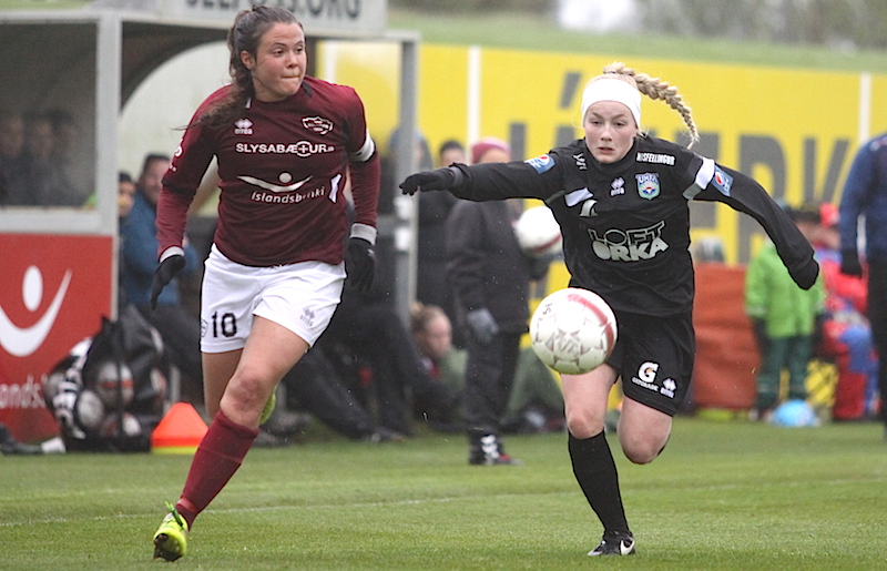 Á 77. mínútu fékk Guðmunda sendingu upp hægri kantinn, hún lék inní teiginn fór framhjá varnarmanni og átti þrumuskot sem að Mist varði. Guðmunda var fyrst á boltann og átti annað skot sem að Mist varði aftur, boltinn barst á Magdalenu Önnu Reimus sem stýrði knettinum í nærhornið og staðan orðin 2-0. Magdalena hafði einungis verið inná í tíu mínútur eftir að hafa komið inná sem varamaður fyrir Evu Lind.