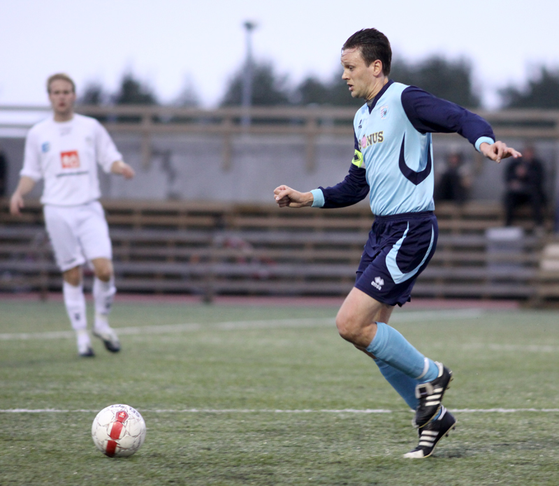 Jón Auðunn Sigurbergsson, fyrirliði Árborgar, skoraði þrjú mörk í einvíginu gegn KFS og hann var sáttur í leikslok í kvöld.