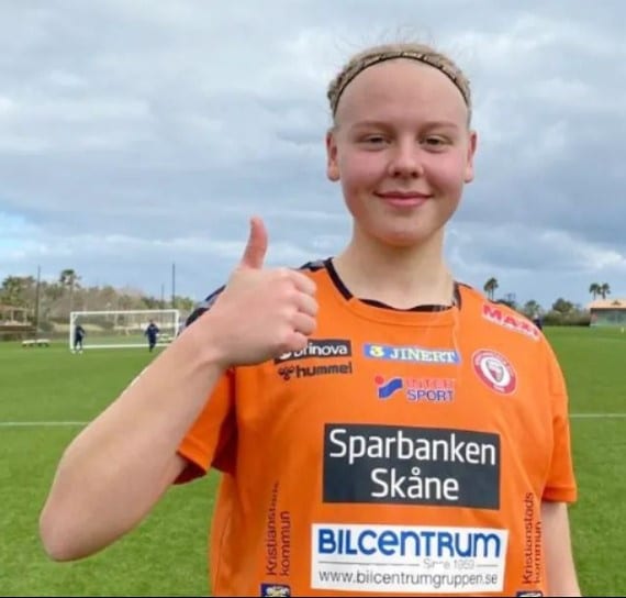 Emelía, sem er ný orðin 17 ára, er ein efnilegasta knattspyrnukona landsins. Hún er leikmaður U19 ára landsliðs Íslands og kom, þrátt fyrir ungan aldur, við sögu í 15 deildarleikjum Kristianstad á síðasta tímabili.