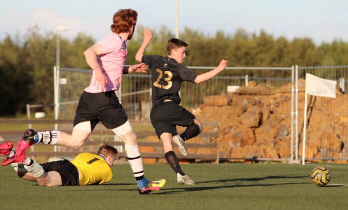 Heimamenn í Árborg réðu lögum og lofum stærstan hluta leiksins. Ingi Rafn Ingibergsson skoraði fyrsta markið úr vítaspyrnu á 17. mínútu og skömmu síðar kom Daníel Ingi Birgisson Árborg í 2-0. Óttar Guðlaugsson skoraði svo sannkallað draumamark á 31. mínútu þegar hann klippti boltann viðstöðulaust upp í samskeytin, eins og sönnum bakverði sæmir. Staðan var síðan 4-0 í hálfleik eftir að Magnús Hilmar VIktorsson hafði sloppið í gegn og skorað á lokamínútu fyrri hálfleiks.