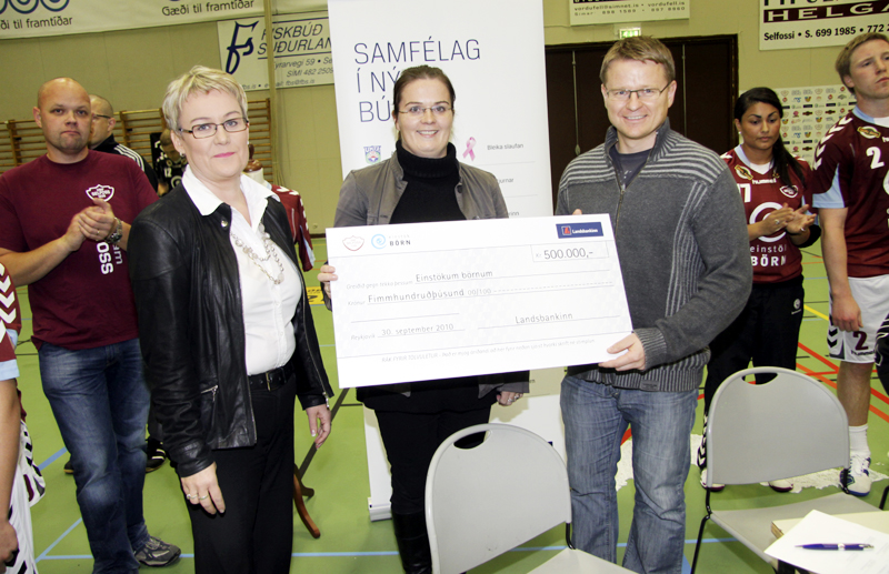 Í tilefni af stofnun áheitasjóða fyrir málefnin átta styrkti Landsbankinn hvert þeirra um hálfa milljón króna, eða samtals fjórar milljónir króna. Styrkur Landsbankans til Einstakra barna nemur því 500.000 krónum. Tryggvi Sigurðsson formaður Einstakra barna veitti styrknum viðtöku fyrir hönd samtakanna á fyrsta heimaleik karlaliðs Selfoss í N1-deildinni á dögunum.