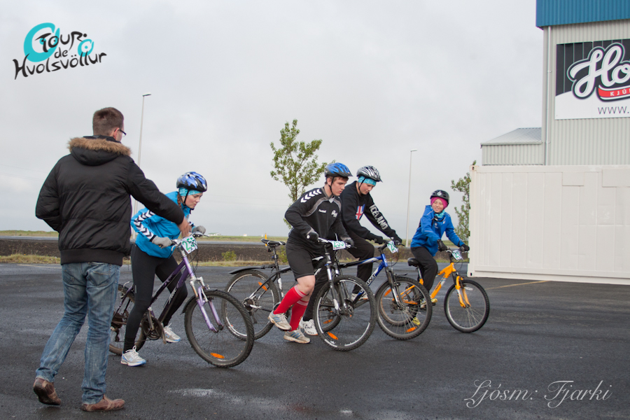 Þau voru ekki mörg sem lögðu af stað frá Hellu í Tour de Hvolsvöllur keppninni á laugardag en þau létu sitt ekki eftir liggja og voru alveg eldfljót að hjóla til Hvolsvallar.