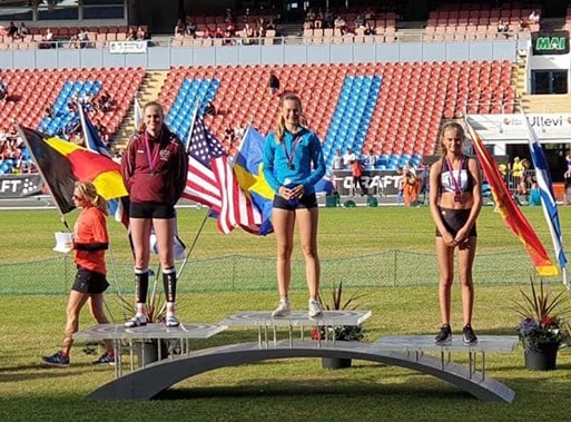 Eva María Baldursdóttir, Umf. Selfoss, vann silfurverðlaun í hástökki í flokki 16 ára stúlkna en hún stökk 1,71 m, sem er sama hæð og sigurvegarinn Karla Schärfe frá Danmörku fór yfir.