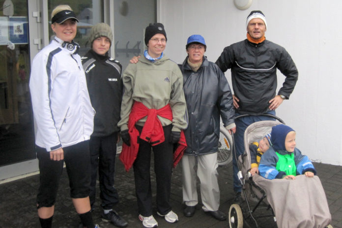 Íþróttafulltrúinn smellti mynd af þátttakendum hlaupsins sem má sjá hér til hægri. (Frá vinstri) Carina Margareta Ek, Einar Guðnason, Victoria Jonsson, Guðný Guðnadóttir, Magnús Sæmundsson, Jóhann Ari og Gylfi Arinbjörn Magnússynir. Á myndina vantar Guðna Einarsson.