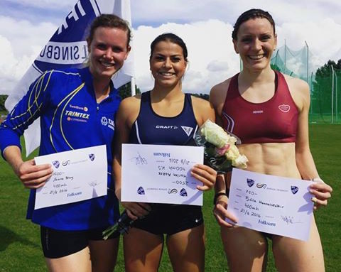 Fjóla Signý Hannesdóttir, Umf. Selfoss, keppti í dag í 400 metra grindahlaupi á Folksam mótaröðinni í Helsingborg í Svíþjóð. Fjóla varð í þriðja sæti á tímanum 64,60 sek.