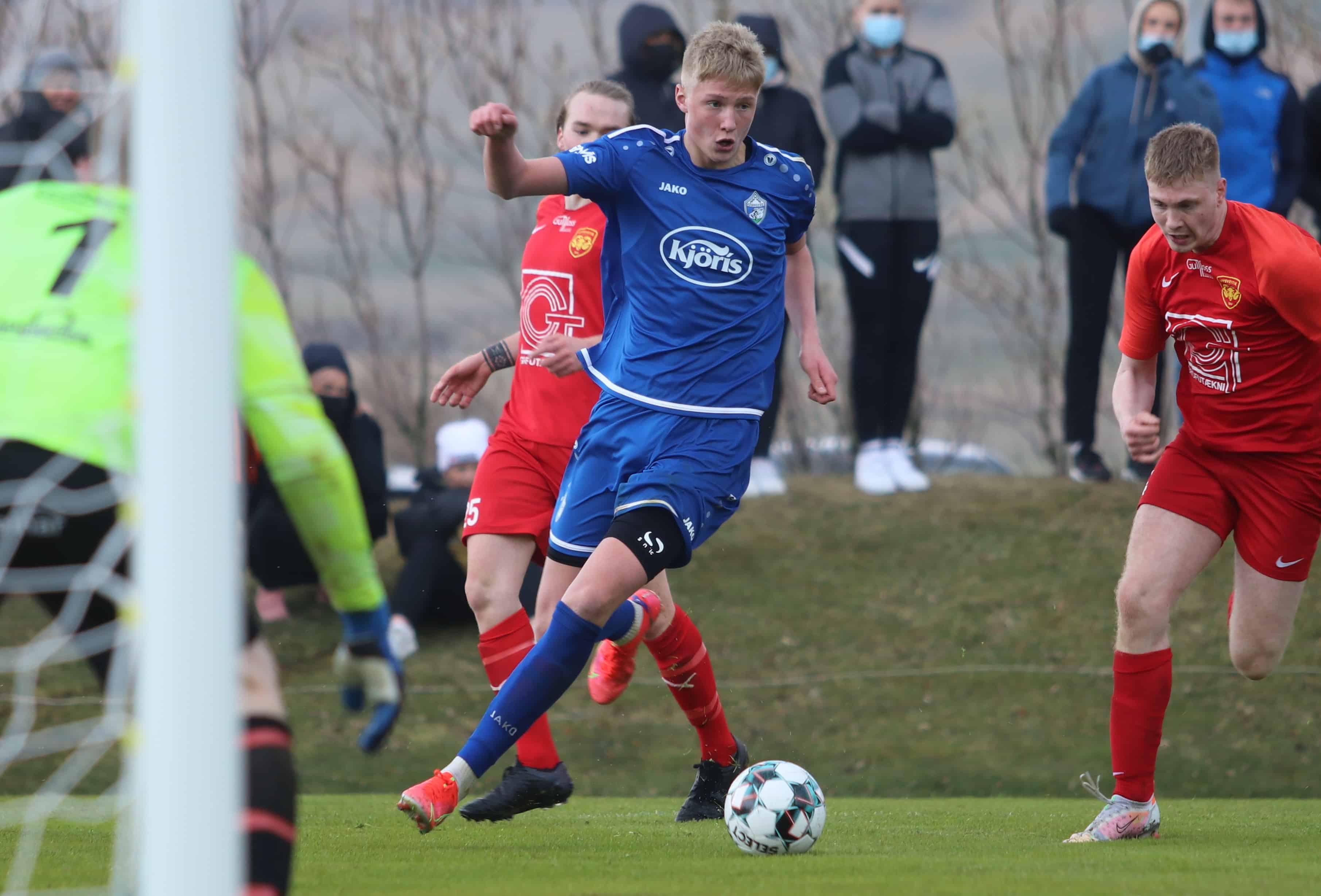 Hamar vann öruggan sigur á Skallagrími þegar liðin mættust í Akraneshöllinni í dag. Atli Þór Jónasson kom Hamri yfir á 15. mínútu og staðan var 0-1 í hálfleik. Sigurður Ísak Ævarsson og Atli Þór bættu svo við tveimur mörkum fyrir Hamar með þriggja mínútna millibili í upphafi seinni hálfleiks og þar við sat. Lokatölur 0-3.