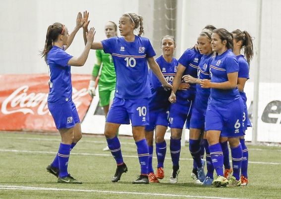 Á 80. mínútu renndi Dagný boltanum inn á Guðmundu sem var felld í vítateignum og Ísland fékk víti. Sara Björk Gunnarsdóttir fór á vítapunktinn og skoraði sigurmarkið.