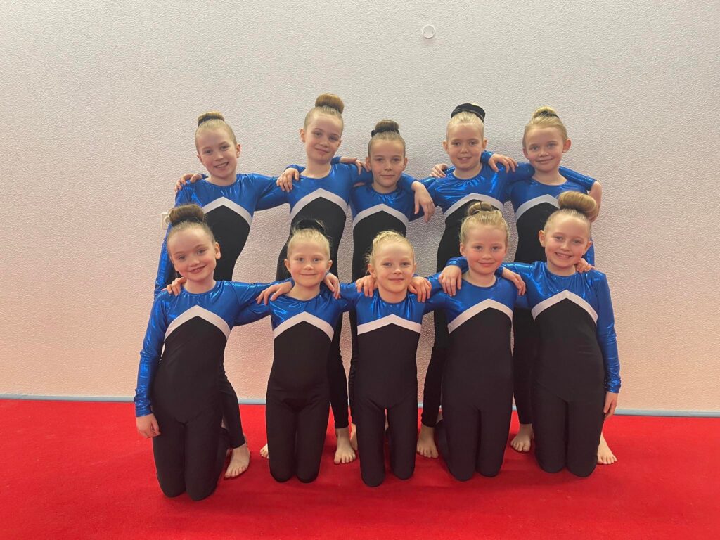 Stúlkurnar í 5. flokki kepptu á laugardeginum í hópfimleikum, þá kepptu þær í dansi, trampólíni og æfingum á dýnu. Þær stóðu sig með stakri prýði, enduðu í 10. sæti og fengu sérstakt hrós fyrir frammistöðu í dansi.