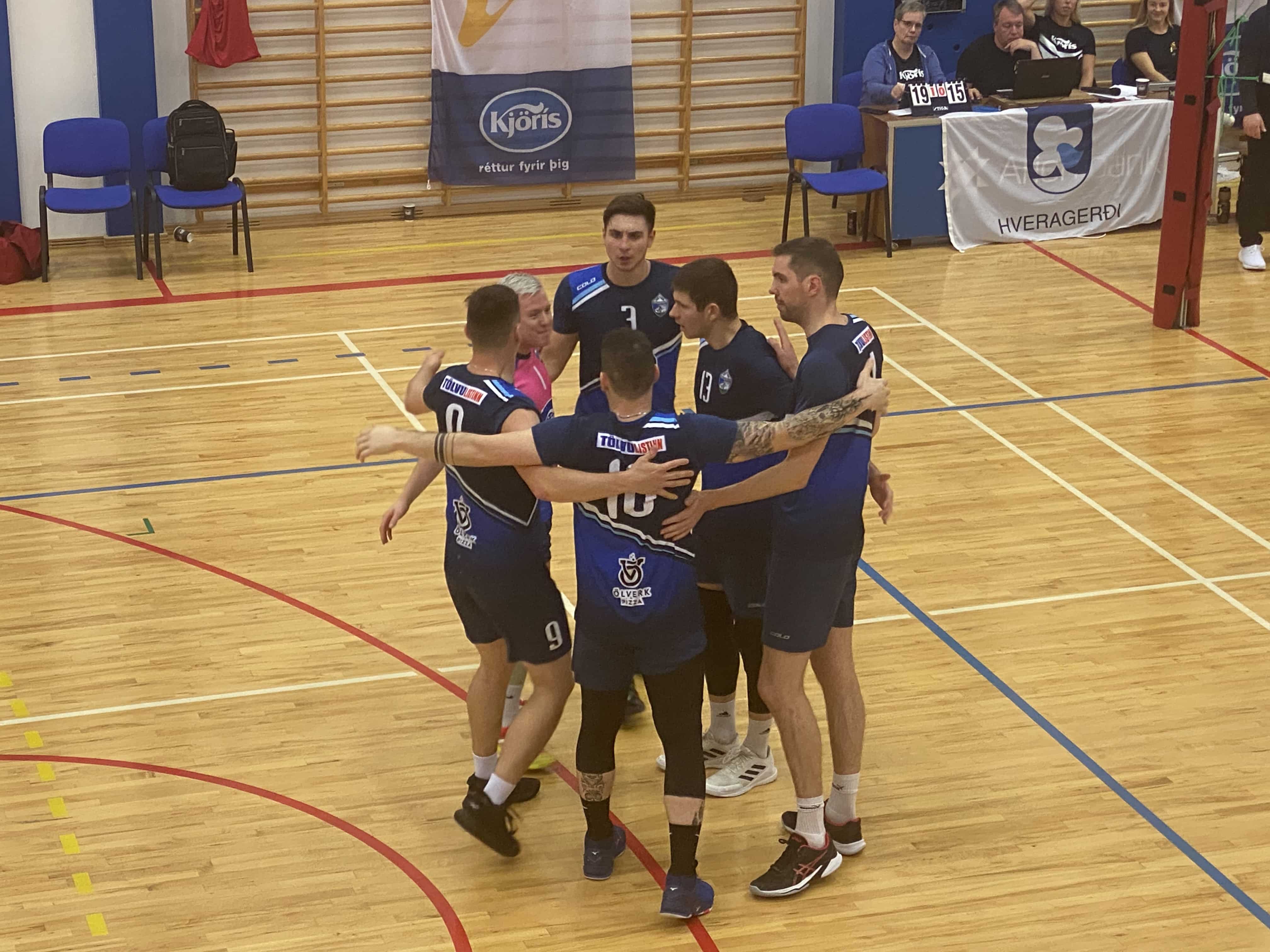 Íslands og bikarmeistarar Hamars í blaki karla tóku á móti HK á heimavelli í fyrsta leik liðsins á Íslandsmótinu í kvöld.