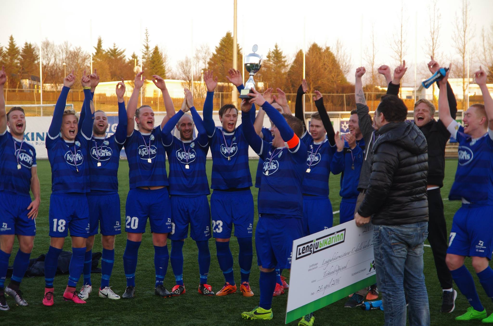 Í vítaspyrnukeppninni nýttu Hamarsmenn þrjár spyrnur en Garðbæingar tvær og Hvergerðingar fögnuðu innilega í leikslok. Þetta er fyrsti deildarbikarmeistararatitill félagsins.
