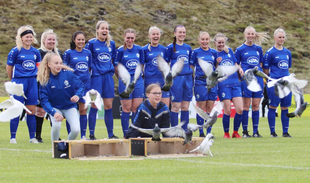 Þetta var fyrsti opinberi knattspyrnuleikur kvennaliðs Hamars en liðið var sett á laggirnar í vetur. Það var vel mætt á völlinn og meðal annars slepptu Hvergerðingar dúfum fyrir leik, til þess að fagna þessum tímamótum.