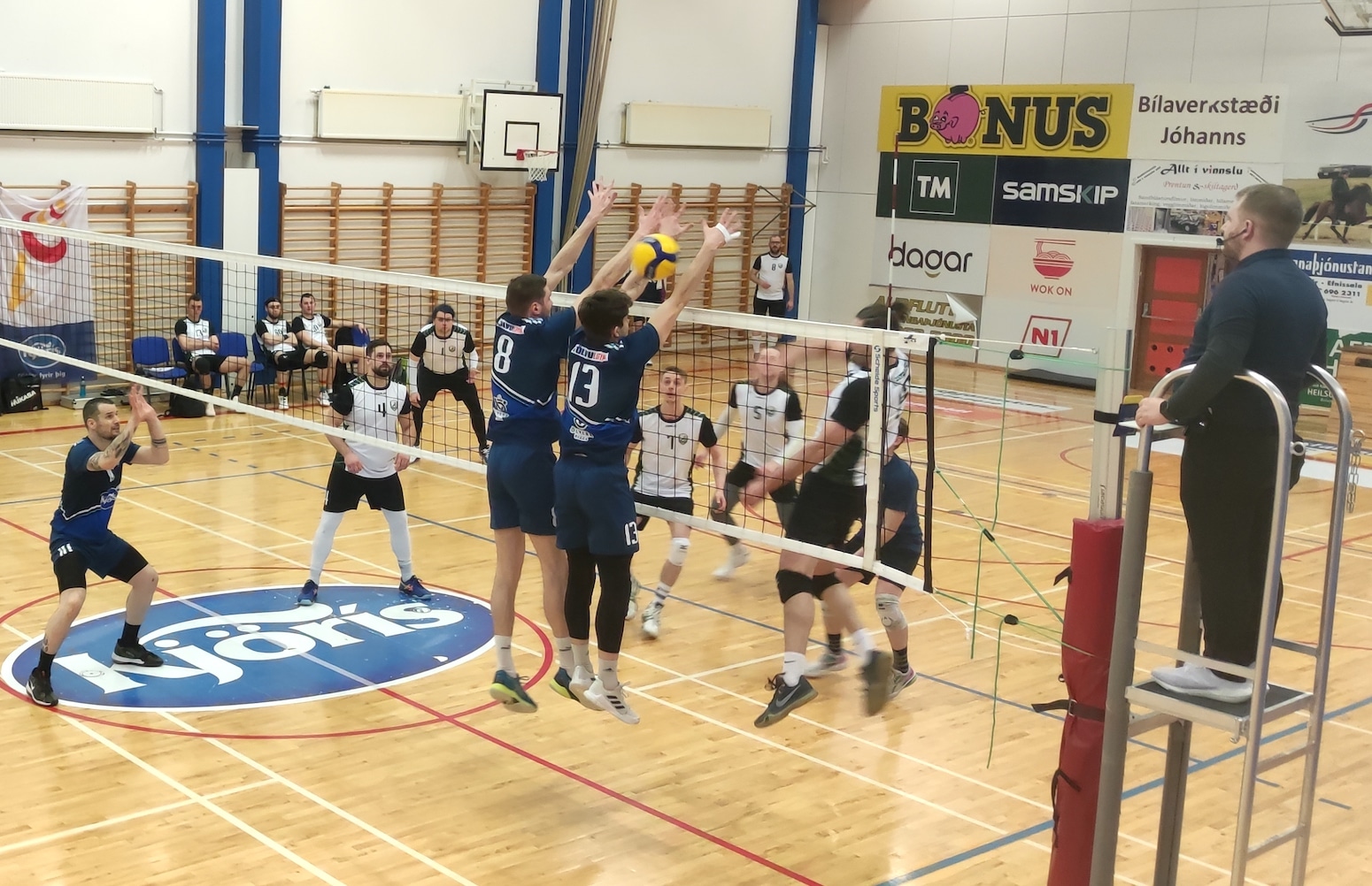 Hamar vann fyrstu hrinuna 25-22 en Stál-úlfar unnu aðra hrinu 21-25. Þriðja hrinan var í járnum en Hamar vann hana að lokum 25-23. Þá var eins og vígtennurnar hefðu verið dregnar úr Stál-úlfum og Hamar vann fjórðu hrinuna örugglega 24-15 og leikinn þar með 3-1.
