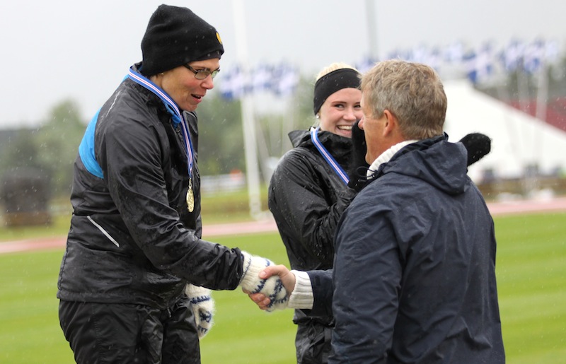 „Nei, ég sé ekki fram á að keppa meira, en það var gaman að vera með. Ég keppti síðast á landsmóti árið 2001 en það eru tíu ár síðan ég fór inn í kasthring síðast. Ég fór aðeins að leika mér fyrir hálfum mánuði og sá þá að ég gat alveg verið með,“ segir Guðbjörg sem þurfti ekki mikla sannfæringu frá liðstjóranum Ólafi Guðmundssyni til að vera með á mótinu.
