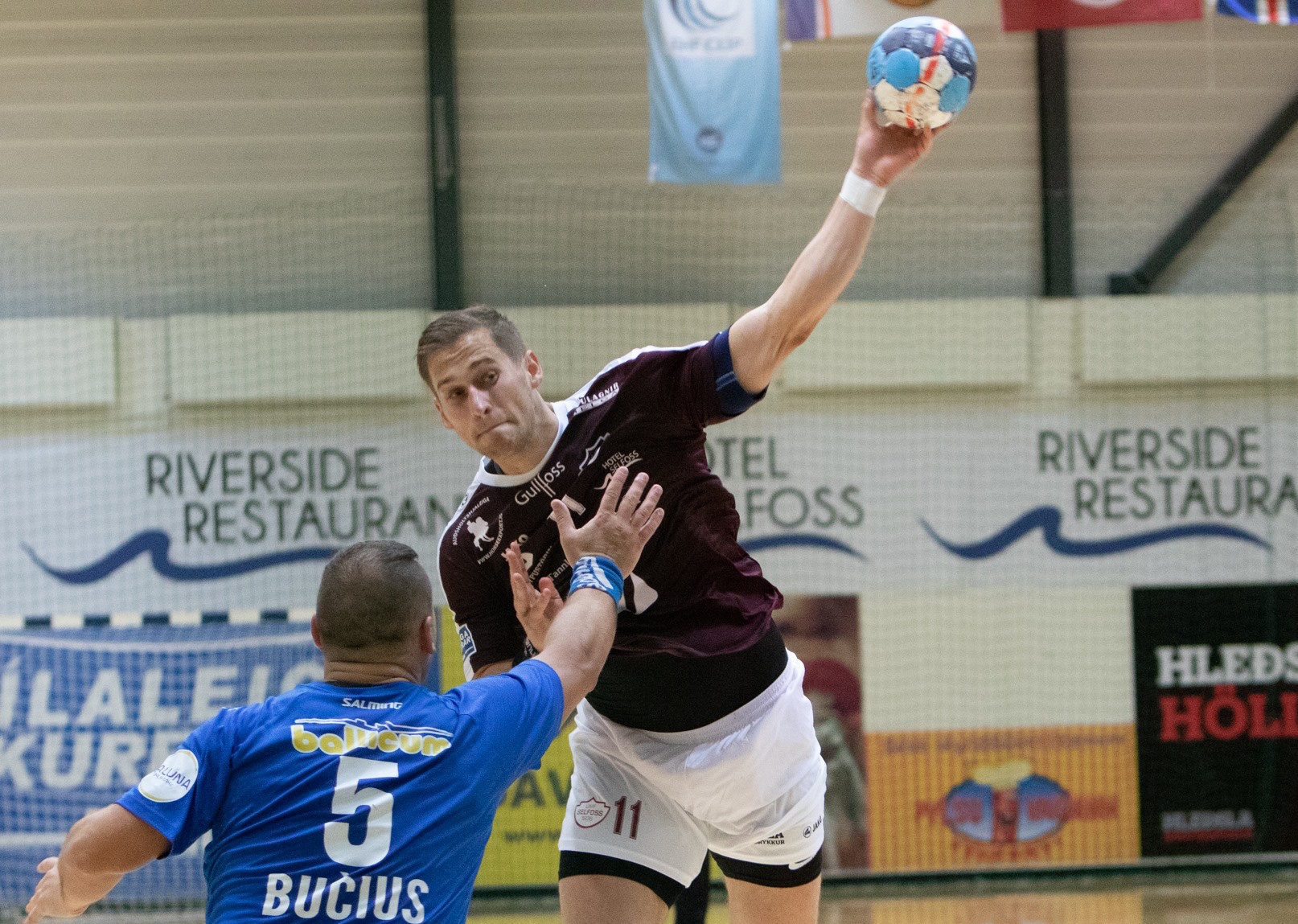 Selfyssingar eru komnir áfram í 2. umferð EHF-bikarsins í handbolta þrátt fyrir 27-26 tap gegn Dragunas á útivelli í Litháen í dag.