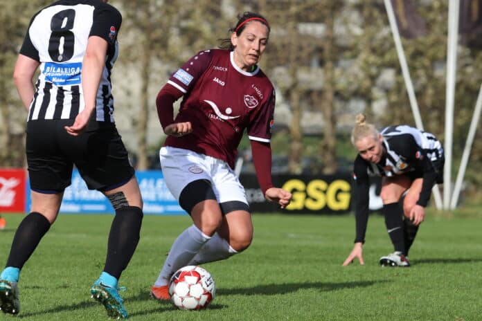 Hólmfríður átti hörkuskalla í stöngina á 37. mínútu en það var McCarty sem lokaði fyrri hálfleiknum hjá Selfyssingum á lokamínútu fyrri hálfleiks þegar hún fékk frábæra sendingu innfyrir frá Hólmfríði og skoraði af öryggi.