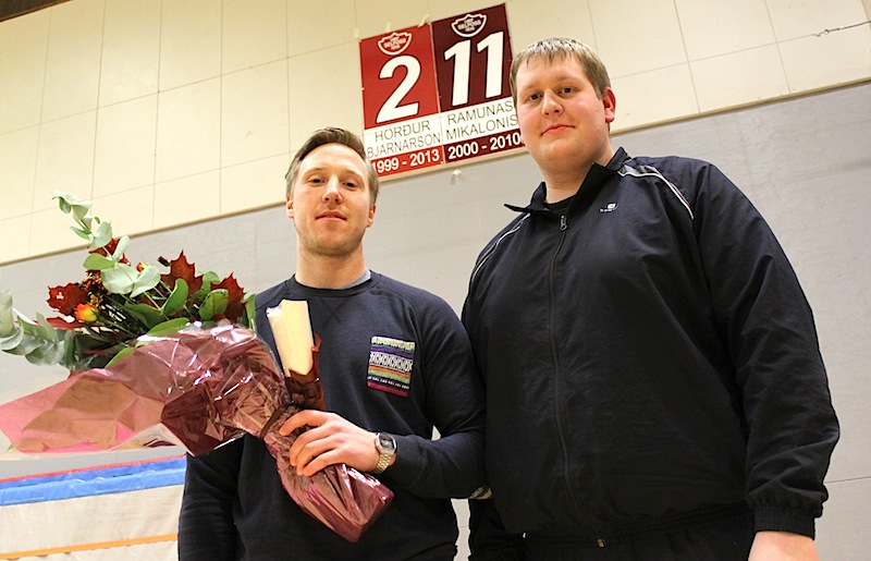 Hörður afhjúpaði skilti með nafni sínu og númeri uppi á vegg í íþróttahúsinu í Vallaskóla. Þessi heiður hlotnast þeim leikmönnum sem hafa sýnt Selfossliðinu tryggð og leikið tíu ár með félaginu. Hörður hefur reyndar gert gott betur en það því hann lék með Selfossi frá árinu 1999 þangað til hann lagði skóna á hilluna í vor, eftir fjórtán ára feril í meistaraflokki.