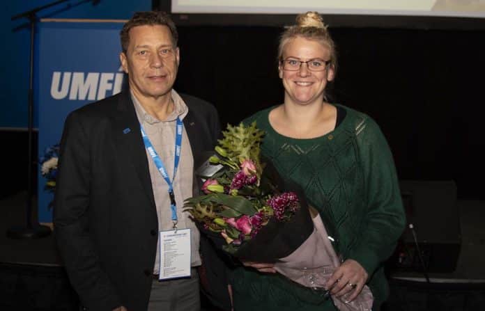 Haukur Valtýsson, formaður UMFÍ, afhenti þeim viðurkenninguna og bætti við Hrönn muni örugglega eitthvað láta til sín taka meðfram búskapnum á Suðurlandi.