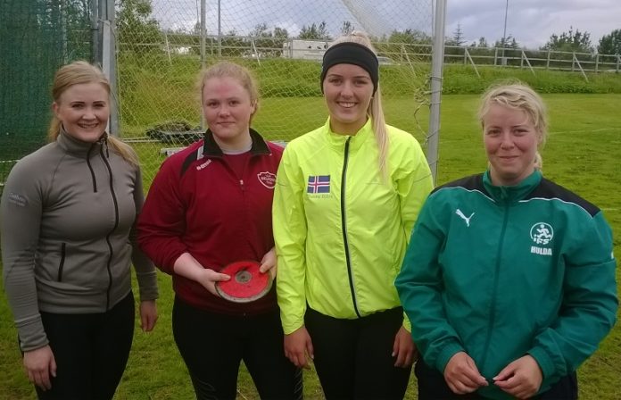 Þá varpaði Guðrún Hulda Sigurjónsdóttir Suðra, kúlunni 9,42 m og setti Íslandsmet í sínum fötlunarflokki, glæsilegt hjá henni og Eyrún Halla Haraldsdóttir Selfossi kastaði svo 9,13 m.