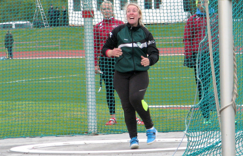 Hulda Sigurjónsdóttir úr Suðra er í feiknaformi þessa dagana og hún bætti eigið Íslandsmet í sleggjukasti í sínum flokki, kastaði 15,45 metra.
