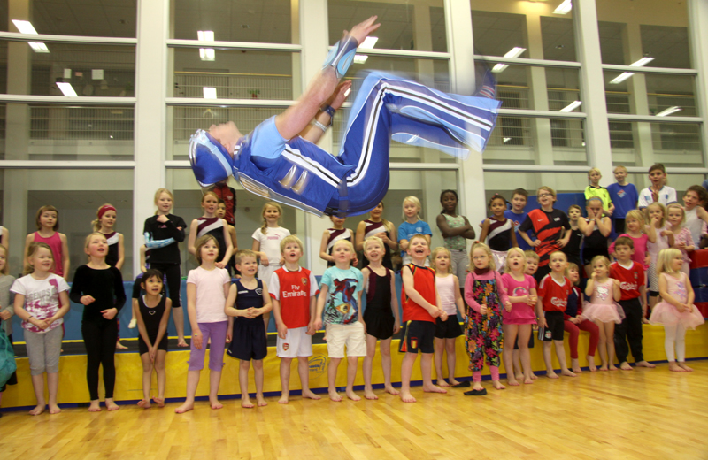 Krakkarnir í fimleikadeildinni eru að æfa fyrir jólasýningu deildarinnar sem sýnd verður þrívegis á laugardaginn. Íþróttaálfurinn mætti til að hvetja þau til dáða auk þess sem hann tók nokkrar æfingar með krökkunum.