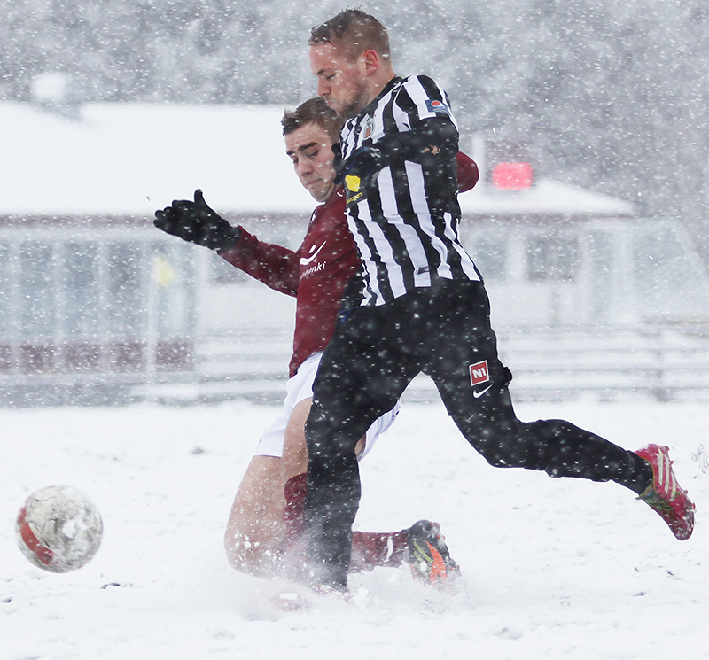 Selfoss og KR skildu jöfn í A-deild Lengjubikars karla í knatttspyrnu á Selfossvelli í kvöld. Það snjóaði duglega í fyrri hálfleik svo gæði leiksins voru lítil en lokatölur urðu 1-1.