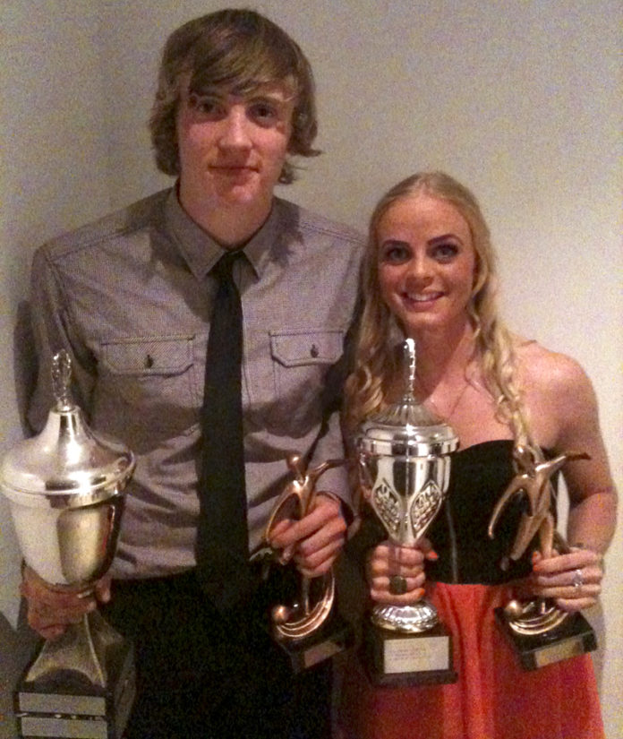 Katrín Rúnarsdóttir fékk framfarabikarinn hjá konunum en markmaðurinn Gunnar Már Hallgrímsson hampaði honum hjá körlunum.