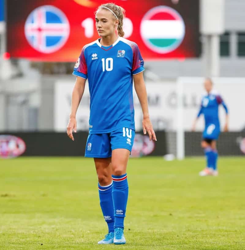 Dagný Brynjarsdóttir skoraði þriðja mark Íslands í 4-1 sigri á Ungverjum á Laugardalsvellinum í kvöld. Leikurinn var fyrsti leikur Íslands í undankeppni EM 2021.