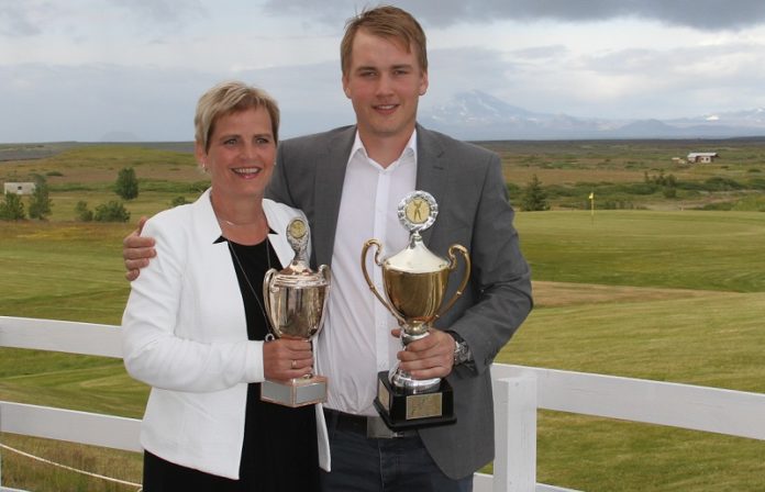 Meistaramóti Golfklúbbs Hellu lauk á laugardaginn í blíðskaparveðri en fyrstu þrjá dagana var þó nokkur vindur. Mæðginin Katrín Björg Aðalsteinsdóttir og Andri Már Óskarsson urðu klúbbmeistarar.
