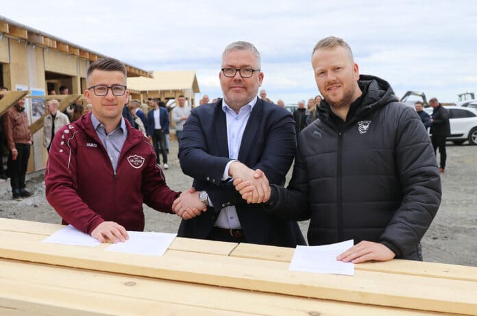 Undirritunin fór fram í reisugildi fyrir fyrstu húsin sem risin eru í nýja Jórvíkurhverfinu á Selfossi, við götuna Bergvík, og undir samninginn skrifuðu þeir Snorri Sigurðsson, framkvæmdastjóri Jórvíkur fasteigna ehf, Eiríkur Sigmarsson stjórnarmaður Knattspyrnufélags Árborgar og Jón Steindór Sveinsson, formaður knattspyrnudeildar Selfoss.