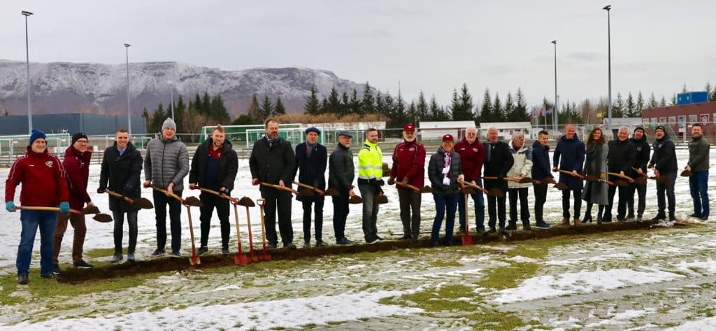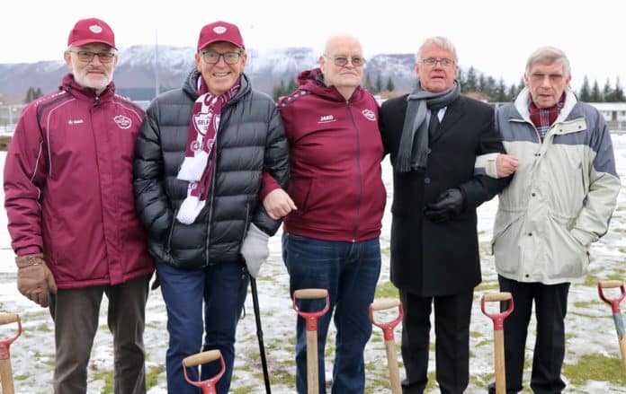 Fremstir í flokki við þessa athöfn voru heiðursfélagar ungmennafélagsins en einnig munduðu skóflurnar stjórnarmenn og starfsmenn ungmennafélagsins, starfsmenn sveitarfélagsins, bæjarfulltrúar, hönnuðir og velunnarar.