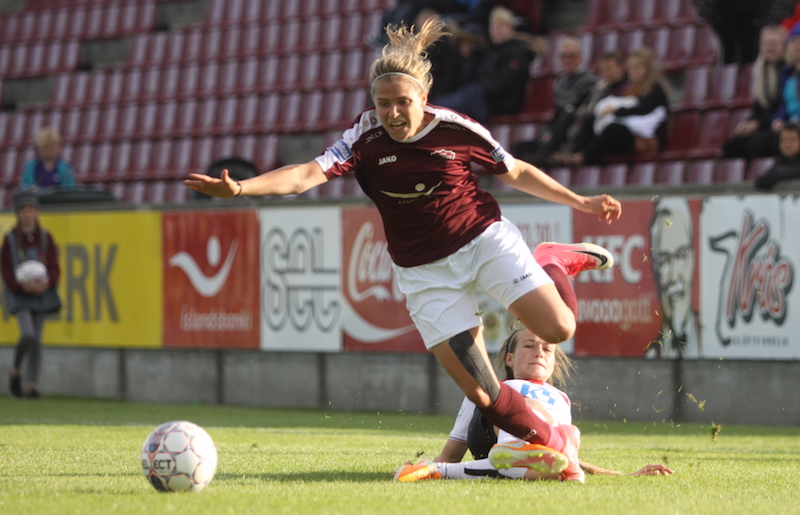Það sama var uppi á teningnum í síðari hálfleik en sóknarþungi Selfoss jókst ef eitthvað var. Á 78. mínútu átti Anna María Friðgeirsdóttir sláarskot og í uppbótartímanum setti Alex Alugas boltann í þverslána með skoti utan af velli. Unnur Dóra Bergsdóttir hirti upp frákastið og skoraði en aðstoðardómari dæmdi markið af og sagði markvörð gestanna hafa haft boltann í höndunum. Líklega sáu allir vallargestir að um rangan dóm var að ræða.