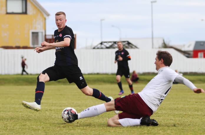 Tindastóll bætti við fjórum mörkum í seinni hálfleik en Stokkseyringum tókst ekki að nýta þau fáu færi sem þeir fengu og lokatölur urðu 0-9.
