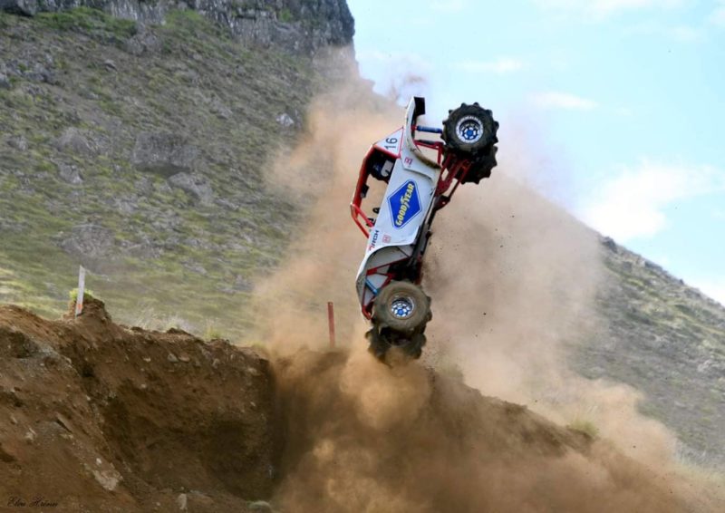 Haukur bendir á að í torfæruheiminum kallist þetta ekki velta. „Veltibúr bílsins snertir aldrei jörðina. Þetta er ekki velta þó að þetta líti út fyrir að vera það. Þetta kallast tilþrif í torfæru – mestu tilþrif sögunnar.“