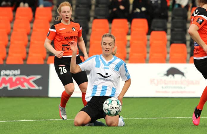 Dagný Brynjarsdóttir með boltann í leiknum í dag. sunnlenska.is/Guðmundur Karl