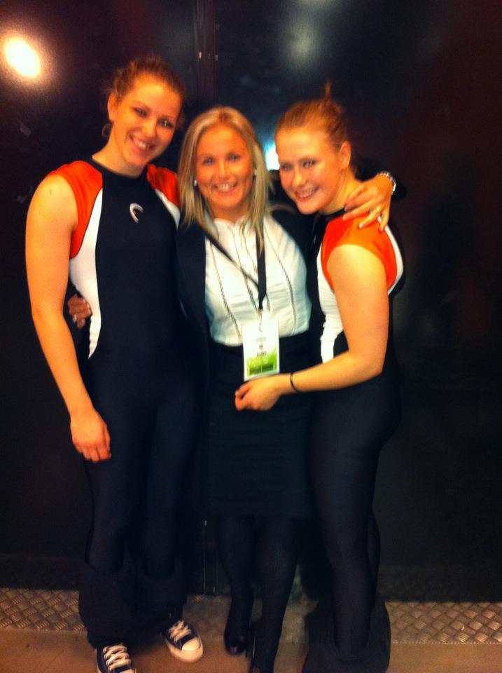 Fimleikakonurnar Rakel Nathalie Kristinsdóttir og Helga Hjartardóttir voru í liði Ollerup sem tryggði sér Norðurlandameistaratitilinn í hópfimleikum mixliða í morgun.