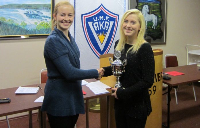 Starfsíþróttabikar Vöku fékk Kolbrún Júlíusdóttir fyrir afrek sín í jurta-og fuglagreiningu á árinu.