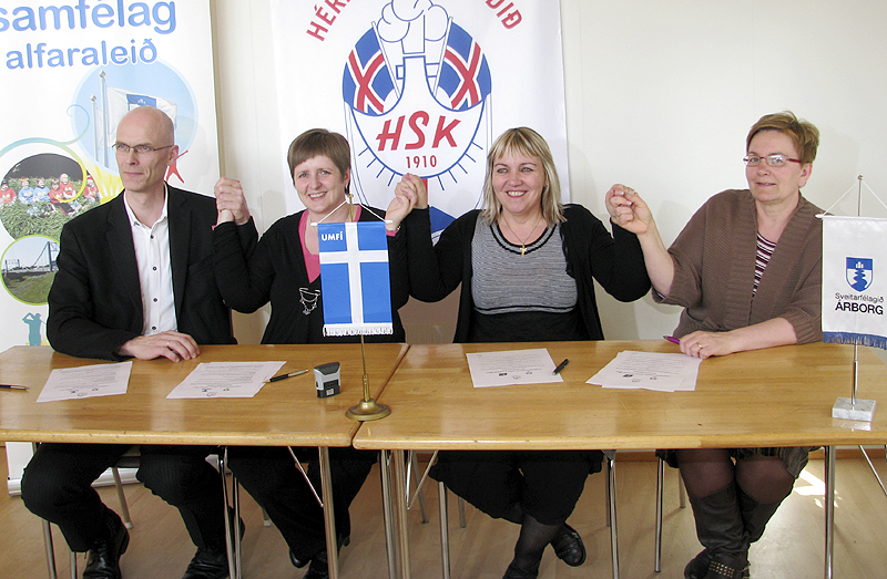 Helga Guðjónsdóttir, formaður UMFÍ og Guðríður Aadnegard, formaður HSK skrifuðu undir samning um að HSK taki að sér mótshaldið og Þórir Haraldsson, formaður framkvæmdanefndar og Ásta Stefánsdóttir, framkvæmdastjóri Árborgar undirrituðu samstarfssamning um framkvæmd mótsins.