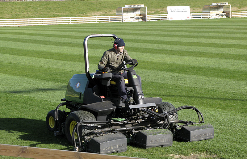 „Hann lítur auðvitað fáránlega vel út. Það er apríl og völlurinn er svipaður og hann var um mitt sumarí júní í fyrra,“ sagði Sveinbjörn Másson, vallarstjóri, í samtali við sunnlenska.is.