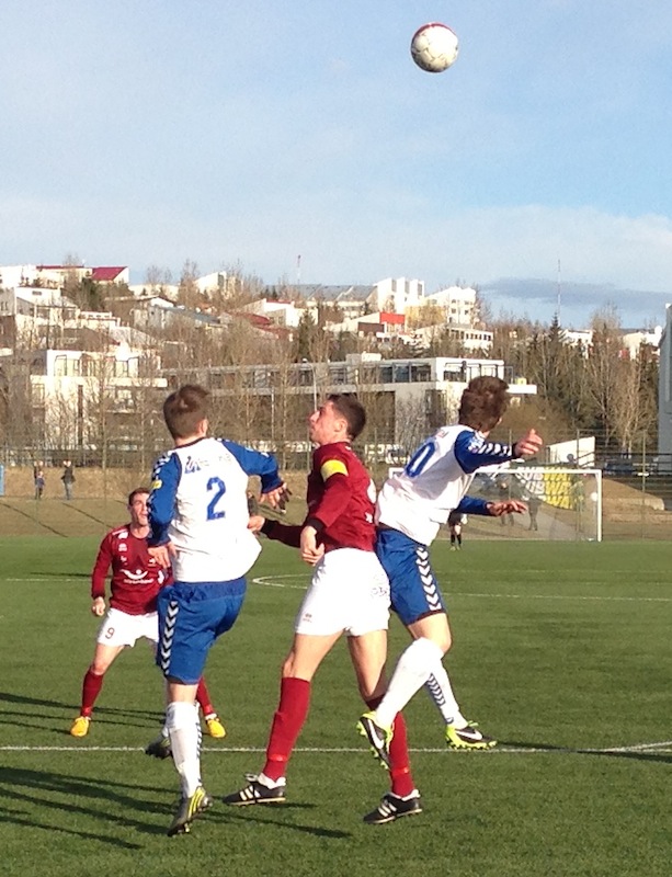 Magnús Ingi var nálægt því að skora eftir klafs í vítateig KV á 30. mínútu en heimamenn björguðu á línu. Þeir komu hins vegar engum vörnum við á 45. mínútu þegar Andy Pew skoraði með skalla og staðan var 0-2 í hálfleik.