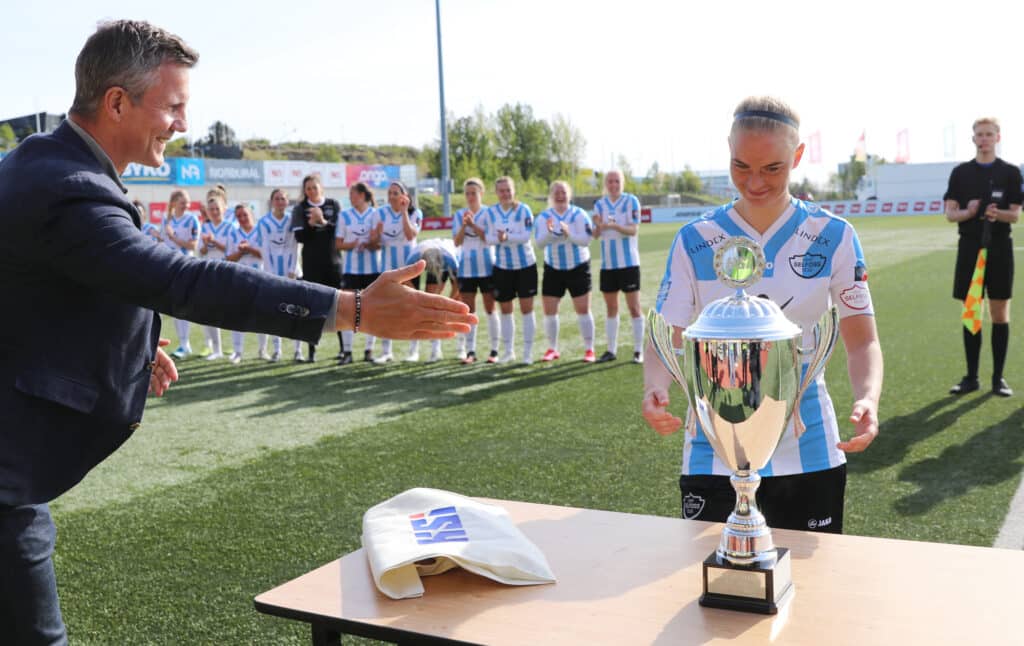 „Við vildum klárlega stimpla okkur svona inn í sumarið og sýna að okkur er alvara. Það eru þrír bikarar í boði í sumar og við ætlum að taka þá alla,“ sagði Alfreð ennfremur.