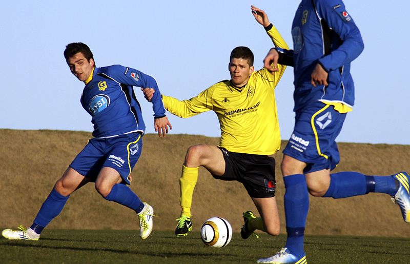 Ægismenn áttu erfitt uppdráttar gegn 1. deildarliði Grindavíkur í gjólunni í Þorlákshöfn í kvöld. Gestirnir komust yfir strax á 7. mínútu leiksins og stjórnuðu leiknum eftir það. Annað mark Grindavíkur kom á 30. mínútu en strax í næstu sókn labbaði Haukur Már Ólafsson í gegnum vörn Grindvíkinga og minnkaði muninn í 1-2.
