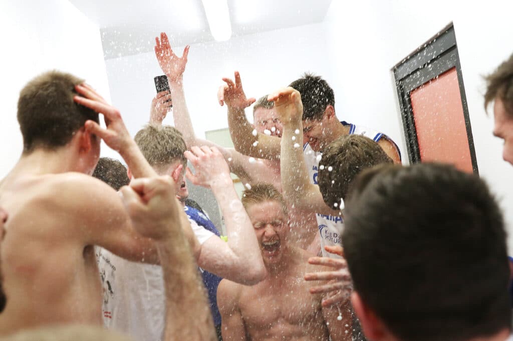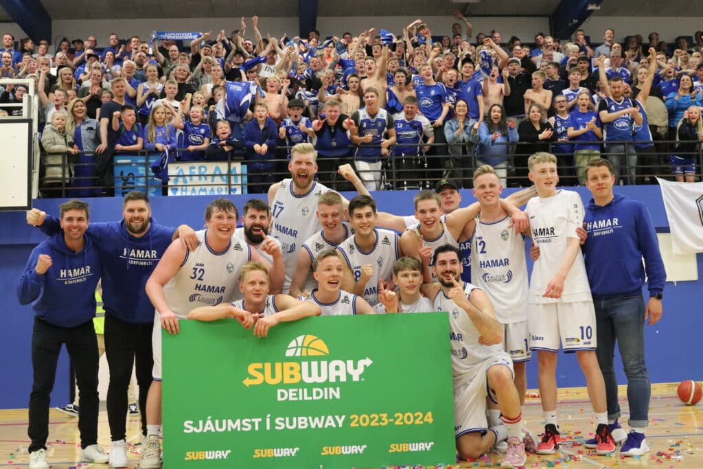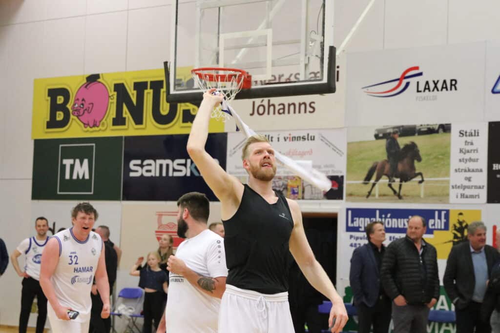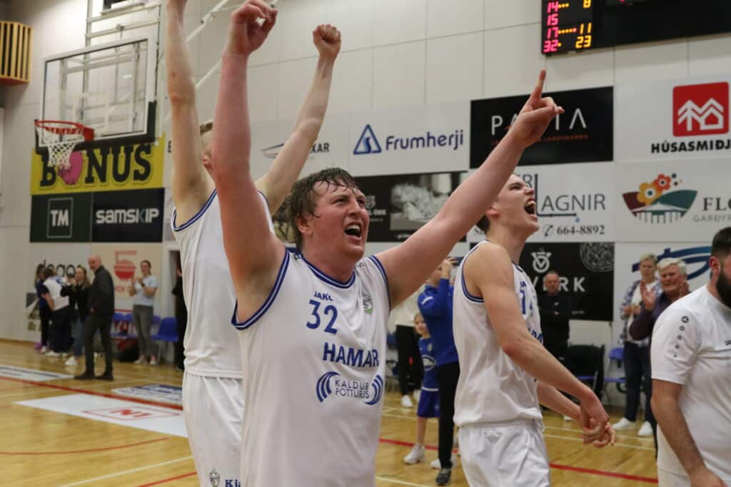 Það var rosaleg stemning í Frystikistunni í Hveragerði í kvöld þegar Hamar tryggði sér aftur sæti í úrvalsdeild karla í körfubolta eftir langa bið. Sunnlenska.is var að sjálfsögðu á staðnum og fangaði augnablikið, sem lauk í kampavínsbaði í sturtuklefanum.