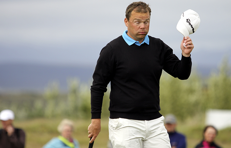 Selfyssingurinn Hlynur Geir Hjartarson var að vonum svekktur að lokinni keppni á Íslandsmótinu í höggleik þar sem hann missti af lestinni á lokasprettinum.