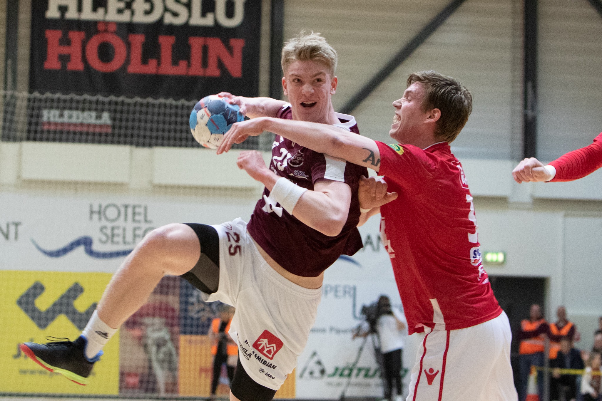 Þetta var fyrsti leikur Einars Sverrissonar í Hleðsluhöllinni í langan tíma eftir hnémeiðsli. Hann fékk hins vegar rautt spjald eftir rúmlega þriggja mínútna og misstu Selfyssingar þar mikla ógn fyrir utan.