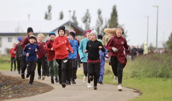 Nemendur gátu valið vegalengdir frá 2,5 upp í 10 kílómetra og voru allir nemendur skólans hvattir til að taka þátt. Sunnlenska.is mætti hlaupurunum á miðstigi á snörpum spretti í Landahverfinu og var ekki annað að sjá en að létt væri yfir krökkunum.