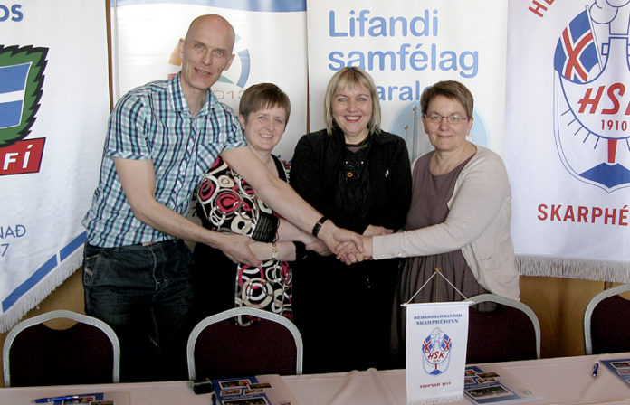 Undir samningana rituðu Helga Guðrún Guðjónsdóttir formaður UMFÍ, Guðríður Aadnegard formaður HSK, Þórir Haraldsson formaður framkvæmdanefndarinnar og Ásta Stefánsdóttir framkvæmdastjóri sveitarfélagsins.