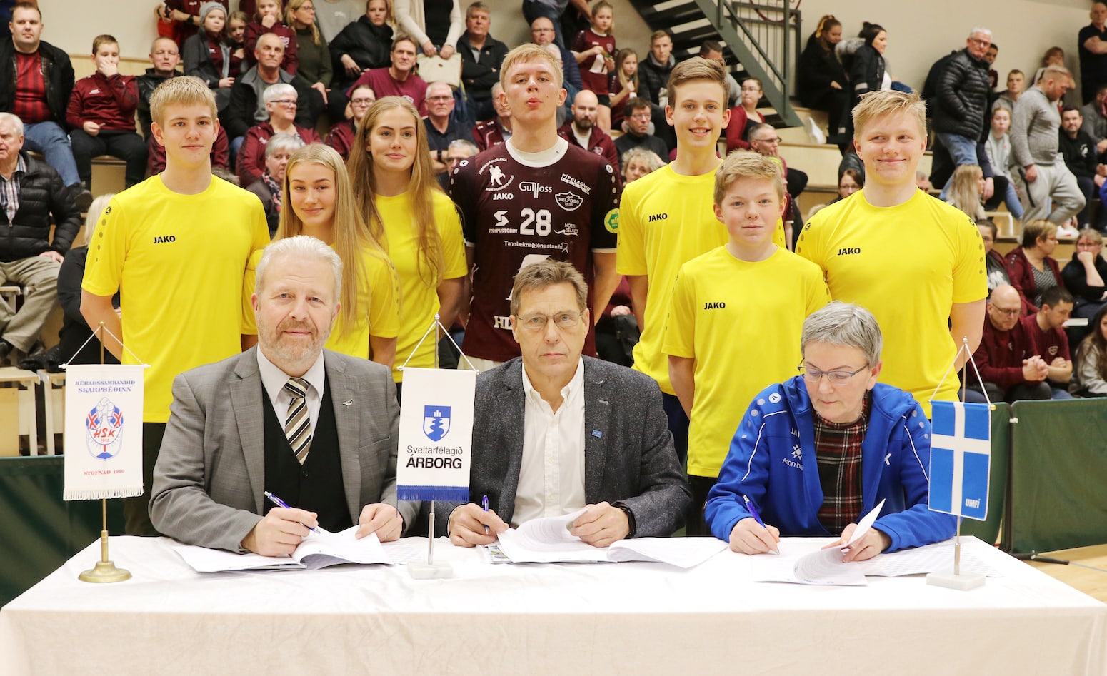 Undirritunin fór fram í íþróttahúsinu Iðu í leikhléi á leik Selfoss og FH í úrvalsdeild karla í handbolta. Það voru þau Gísli Halldór Halldórsson, bæjarstjóri, Haukur Valtýsson, formaður UMFÍ og Guðríður Aadnegard, formaður HSK, sem skrifuðu undir samninginn.