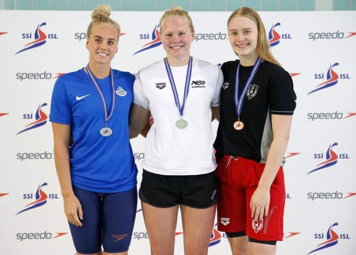 Snæfríður Sól synti 100 m skriðsund á laugardag á 57,22 sek og sigraði glæsilega.