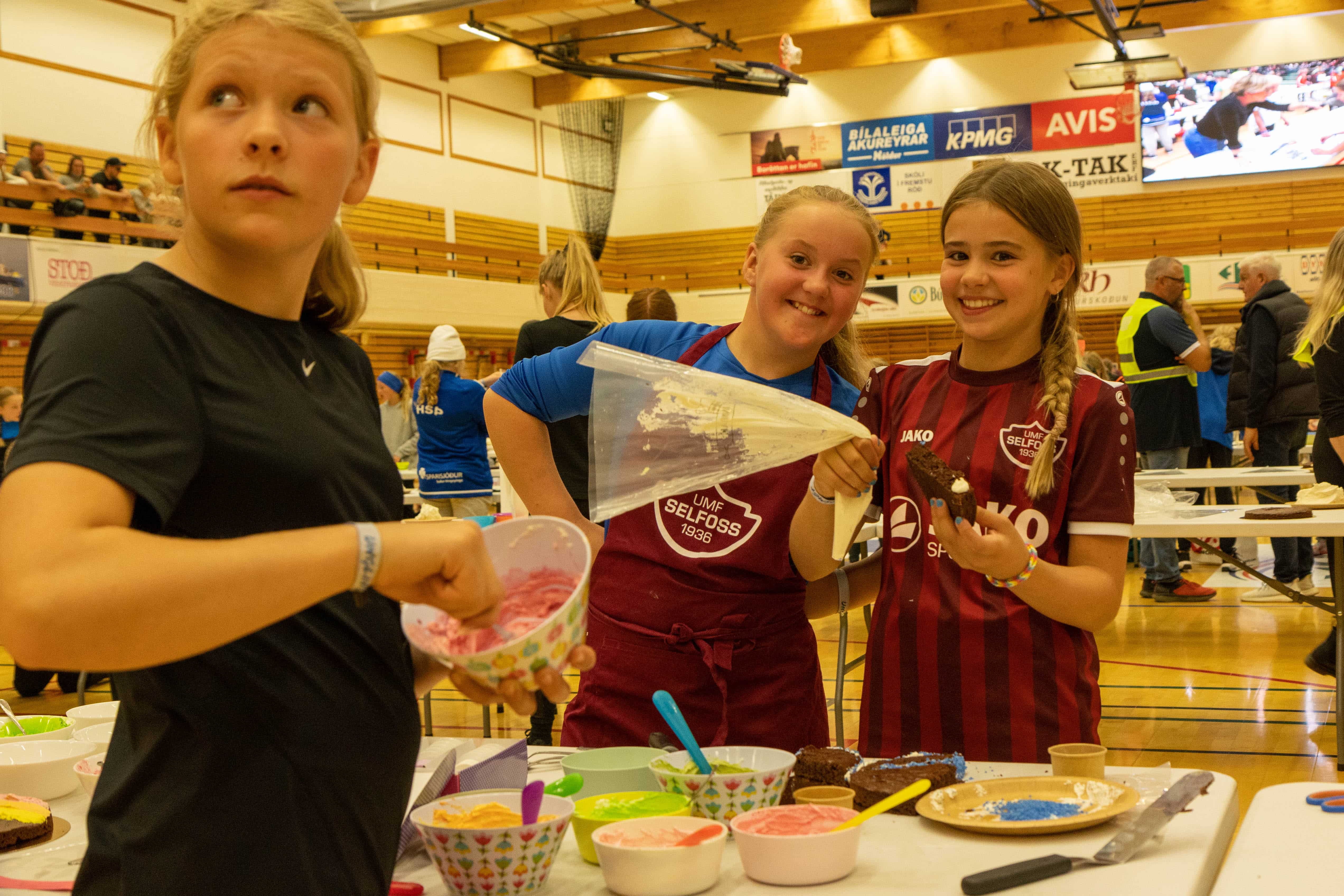 Kl. 11:00 hefst keppni í kökuskreytingum fyrir 16 ára og yngri í íþróttahúsinu. Hægt er að keppa einn eða fleiri saman í liði. Keppendur fá einn kökubotn á staðnum og í boði er að fá hvítt smjörkrem og nammi. Allt annað koma keppendur með að heiman, disk undir kökuna, liti, áhöld skraut og fleira. Keppendur fá 30 mínútur til að skreyta og eftir það tekur dómnefnd til starfa. Athugið að nauðsynlegt er að skrá sig fyrirfram og tekur Fanney Ólafsdóttir í starfsíþróttanefnd HSK við skráningum á netfangið fanneyo80@gmail.com til kl. 12 föstudaginn 18. ágúst.